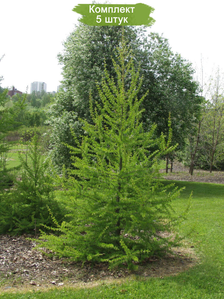 Приобретите комплект из 5 саженцев лиственницы Европейской, каждый из которых имеет высоту от 60 до 100 см. Лиственница Европейская (Larix decidua) – это красивое, быстрорастущее дерево с характерной пирамидальной формой кроны, которое идеально подходит для украшения вашего сада или парка.