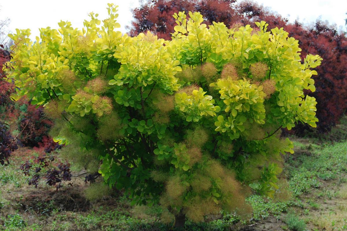 Скумпия Голден Спирит (Cotinus coggygria 'Golden Spirit') – это уникальное декоративное растение, которое станет ярким акцентом в вашем саду. Этот кустарник привлекает внимание своими необычными золотисто-желтыми листьями, которые сохраняют насыщенный цвет на протяжении всего сезона. Осенью листва приобретает великолепные оттенки оранжевого и красного, создавая незабываемое зрелище.